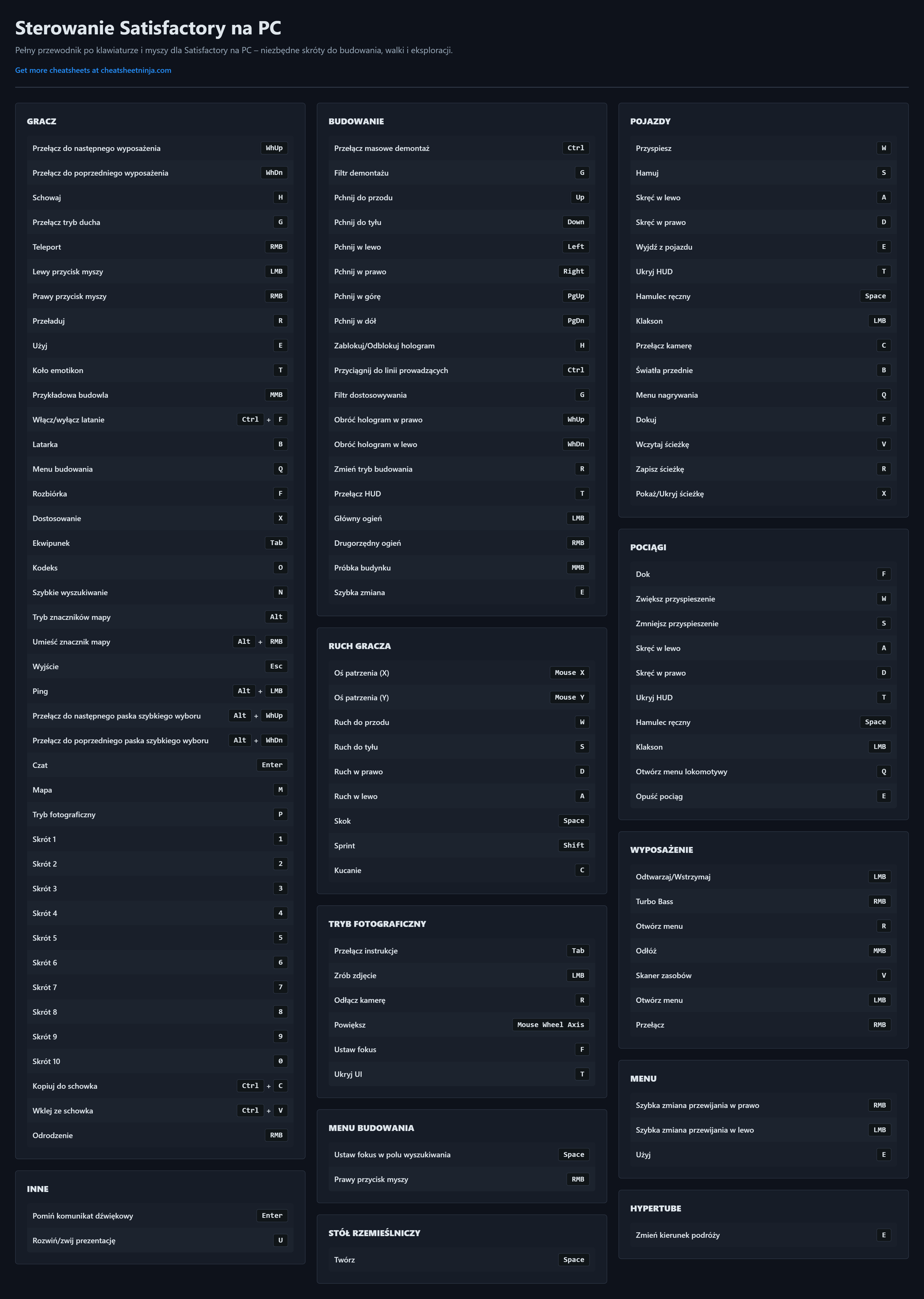 Pełny przewodnik po klawiaturze i myszy dla Satisfactory na PC – niezbędne skróty do budowania, walki i eksploracji.